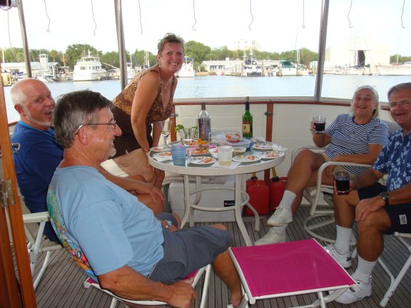 Larry & Sue, Jean & Steve, at Happy Hour aboard SUMMERTIME in Vero Beach FL